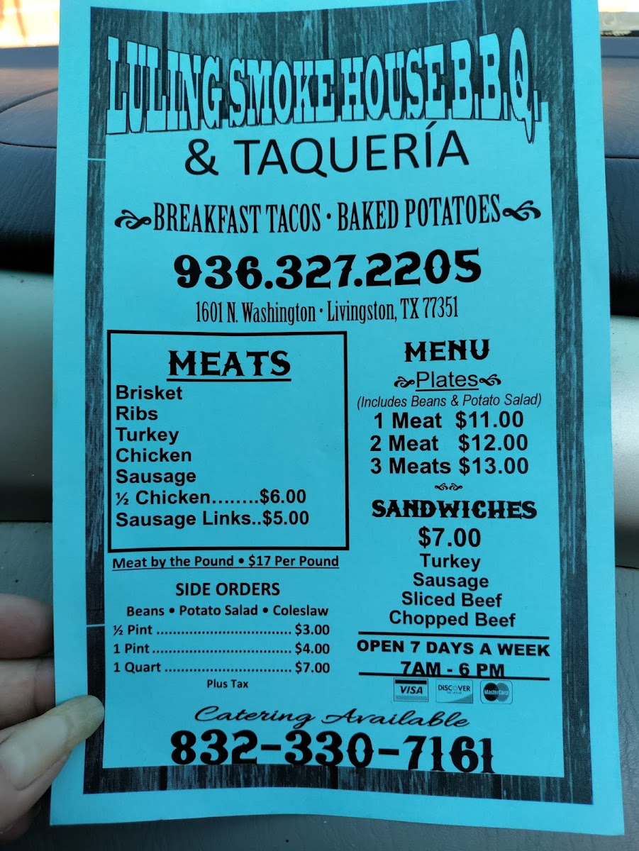 Introducing Luling Smoke House BBQ and Taqueria, a hidden gem located at 1601 N Washington Ave, Livingston, TX. This culinary haven tantalizes BBQ lovers and taco enthusiasts alike with its mouthwatering menu. Start your day with the breakfast tacos, featuring options like the Brisket & Egg or the hearty Brisket Only tacos, both priced to delight.